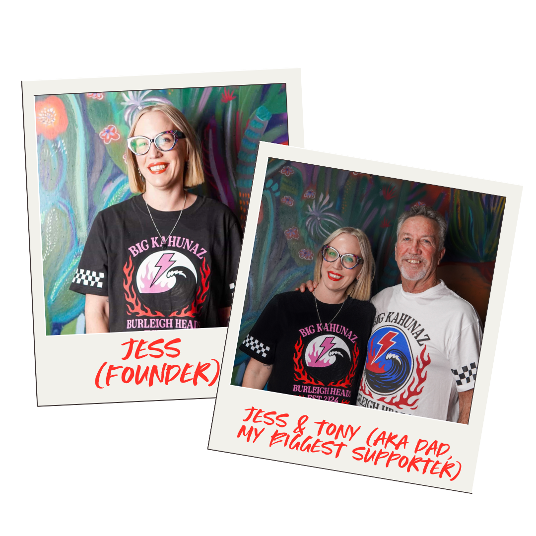 Before Big Kahunaz, Jess spent years working at a state manager level in high-end apparel, leading teams, managing large budgets and operating inside demanding corporate environments.
